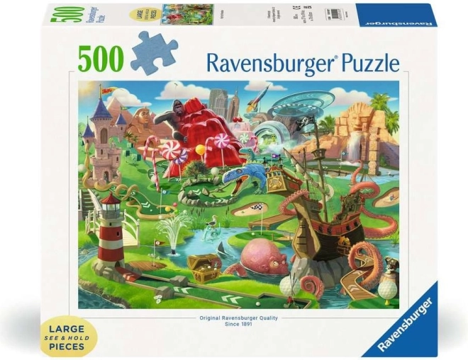 Odkryj radość z układania puzzli RAVENSBURGER z motywem minigolfowego raju. Elementy są ekstra duże dla łatwiejszej manipulacji, idealne dla dzieci, seniorów i osób ze słabszym wzrokiem. Z około 500 elementami XXL o wielkości około 3 cm trenujesz motorykę małą i cierpliwość, a gotowy obraz ma wymiary ok. 70 × 50 cm.