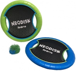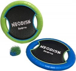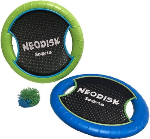 Neodisk Sporto to dynamiczny zestaw do szybkiej i niewymagającej gry na zewnątrz. Każdy dysk ma solidny, lecz lekki brzeg oraz sprężystą siatkę, która ułatwia łapanie i odbijanie mięciutkiej piłeczki. Dzięki prostym zasadom do zabawy od razu dołączy cała rodzina.
