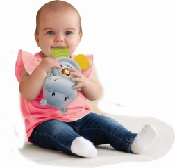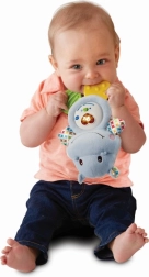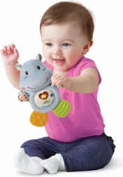 Vtech Hipcio Przyjaciel został zaprojektowany tak, aby oferować zarówno zabawę, jak i pomoc podczas wzrostu dziecięcych ząbków. Zabawka jest wyposażona w miękkie części do masażu dziąseł i łatwe do chwytania uchwyty, co jest idealne dla małych dziecięcych rączek. Hipcio jest lekki i przyjemny w dotyku, a kiedy naciśniesz jego brzuszek ze świecącym serduszkiem, rozświetli się i zaoferuje interaktywną zabawę. Dodatkowo zabawka oferuje: