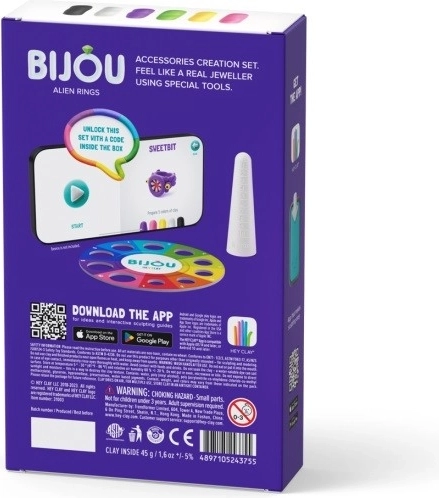 Zestaw HEY CLAY Bijou Alien Rings łączy kreatywne tworzenie z zabawną aplikacją edukacyjną. W opakowaniu znajdziesz miękką, delikatną masę do modelowania w nasyconych kolorach oraz kod dostępu do aplikacji, która krok po kroku prowadzi od prostych kształtów aż do gotowego pierścionka.