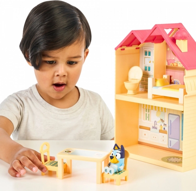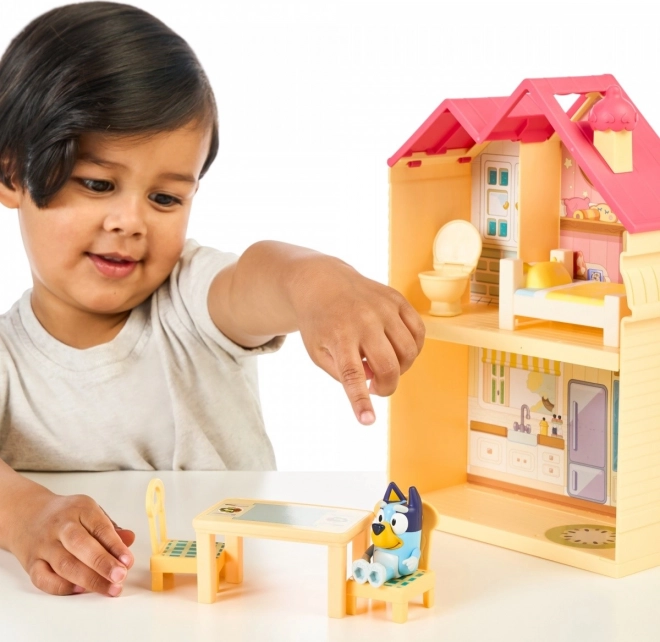 Mini domek BLUEY – Dom rodzinny zapewnia dzieciom godziny radosnej zabawy. Kompaktowy, dwupiętrowy dom z kolorowym wnętrzem kryje przytulną sypialnię do odpoczynku, kuchnię na przekąski i łazienkę do codziennej rutyny. Nie brakuje drobnych akcesoriów i figurki, dzięki którym zabawa jest jeszcze ciekawsza.