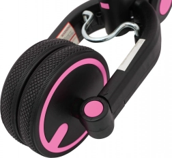 Gumowe, antypoślizgowe rączki i piankowo wyściełane siodełko z dwustopniową regulacją (28–30 cm) zwiększają komfort. Gumowe koła (przednie 22×3,5 cm, tylne 17×3,5 cm) z bieżnikiem świetnie trzymają tor jazdy, a wolnobieg z możliwością odpięcia pedałów pozwala dziecku bezpiecznie się odpychać.