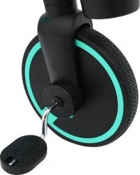 - Kontrola rodzica: odpinany, regulowany na wysokość drążek do prowadzenia
