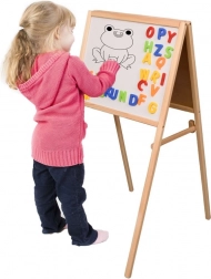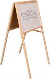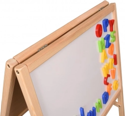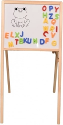 Rama z trwałego drewna zapewnia stabilność i długą żywotność, a jednocześnie tablica jest składana, więc po zabawie łatwo ją schowasz. W zestawie znajdziesz wszystko, czego potrzeba do natychmiastowego użycia: 26 magnetycznych literek, 3 kredy, gąbkę i marker suchościeralny.