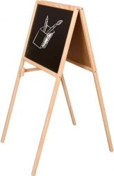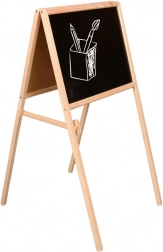Solidna drewniana rama pewnie utrzymuje tablicę na miejscu, a składana konstrukcja ułatwia przechowywanie i przenoszenie.