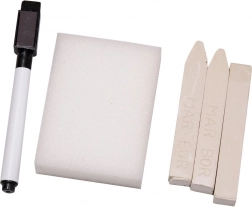 W zestawie znajduje się 26 kolorowych magnetycznych literek, 3 kredy, gąbka i marker suchościeralny – wszystko, czego dzieci potrzebują do natychmiastowej zabawy i nauki.