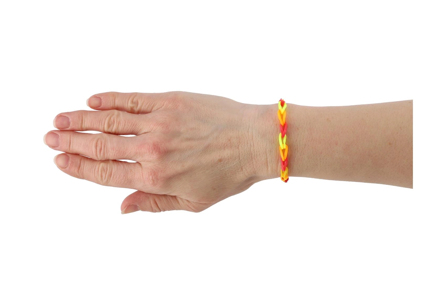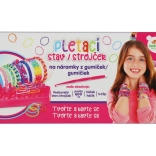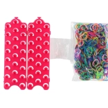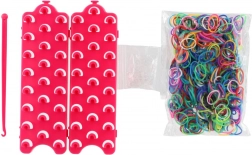 - 600 szt. silikonowych gumek (mix kolorów), trzyrzędowe krosno, szydełko, zapięcia, instrukcja