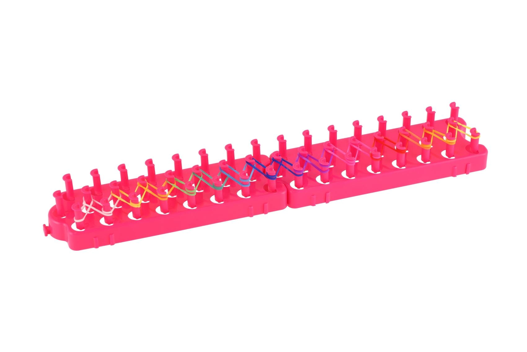 Modułowe krosno z gęsto rozmieszczonymi kołeczkami pozwala tworzyć proste i złożone wzory bransoletek oraz dodatków.