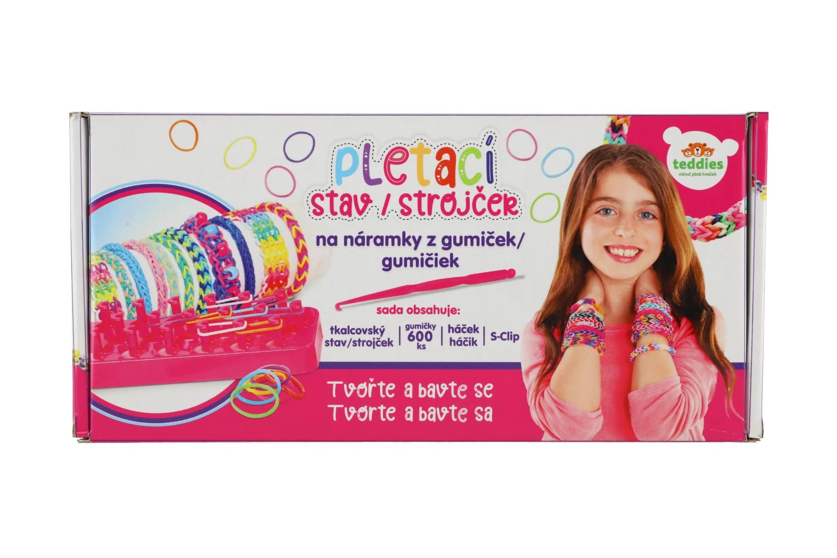 Odkryj kreatywny zestaw dla dzieci i dorosłych: krosno, szydełko i 600 kolorowych silikonowych gumek do tworzenia bransoletek, ozdób do włosów czy breloków. Zestaw wspiera motorykę małą, koncentrację i wyobraźnię – wszystko w poręcznym pudełku 27 × 13 × 4 cm, idealnym w podróż i na prezent.