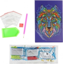 - Blok, diamentowe kamyczki, aplikator, wosk klejący, tacka do segregacji