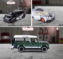 Seria Majorette Deluxe prezentuje luksusowe, licencjonowane pojazdy marek AUDI, BUGATTI, LAND ROVER, NISSAN i PORSCHE w wysokiej jakości metalowym wykonaniu. Każdy model (ok. 7,5 cm) ma otwierane elementy, gumowe opony i sprężynowane zawieszenie dla płynnej jazdy i autentycznego wyglądu.