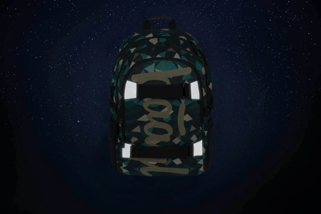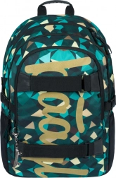 Plecak z trzema oddzielnie zamykanymi komorami, w tym kieszeń na laptop i paski na deskorolkę. Lekka waga i wodoodporny materiał.