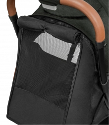 Dla maksymalnego komfortu dziecka wózek ma wielostopniowe oparcie z pokrętłem, regulowany podnóżek oraz wielostopniowy daszek z częścią siateczkową dla lepszej cyrkulacji powietrza. Bezpieczeństwo zwiększają 5‑punktowe pasy i odpinany pałąk, a dla rodziców przewidziano rączkę z eko‑skóry i duży kosz dolny na wszystkie niezbędne rzeczy.