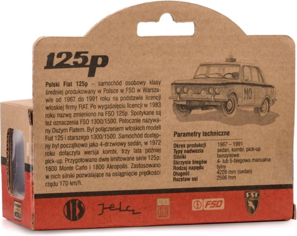 Polski Fiat 125p, potocznie „Duży Fiat”, to kultowy samochód klasy średniej produkowany w warszawskim FSO w latach 1967–1991 na licencji FIAT. Łączył elementy modeli Fiat 125 oraz starszych 1300/1500, oferowany był jako sedan, kombi i pick-up. Limitowane serie 1600 Monte Carlo i 1800 Akropolis osiągały prędkości do 170 km/h.