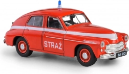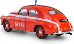 Ikoniczna PRL Warszawa M-20 to symbol powojennej ery motoryzacji. Pierwszy egzemplarz zjechał z taśmy 6 listopada 1951 o 14:00 i szybko zyskał popularność także poza Polską – eksport rozpoczął się już w 1954 roku. Ten model w wersji strażackiej wiernie oddaje ówczesne linie i proporcje, dzięki czemu doskonale pasuje do kolekcji miłośników klasyków i historycznych pojazdów ratowniczych.