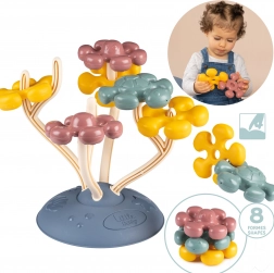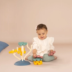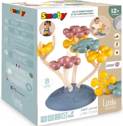 Little Smoby Koralowe zabawki drzewne składają się z ośmiu kolorowych plastikowych elementów przypominających ozdobne kształty ośmiornic i żółwi. Dzieci mogą łatwo łączyć poszczególne części i zmieniać ich ułożenie na gałązkach drzewa, co wspiera kreatywność.