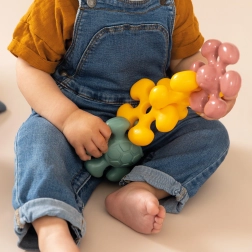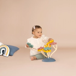 Zabawka wyróżnia się ergonomicznym designem z zaokrąglonymi kształtami i nowoczesnymi kolorami, które doskonale pasują do pokoju dziecięcego. Jest starannie zaprojektowana, aby wspierać rozwój percepcji sensorycznej i małej motoryki.