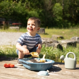 Z konewką, grabkami, łopatką i foremkami łatwo rozwijać kreatywność i małą motorykę dzieci.