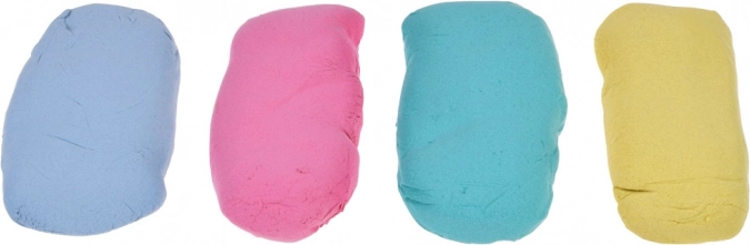 Zestaw zawiera 4 woreczki piasku po 70 g w kolorach żółtym, różowym, zielonym i niebieskim. Piasek nie rozsypuje się i nie wysycha, pachnie słodką gumą do żucia.