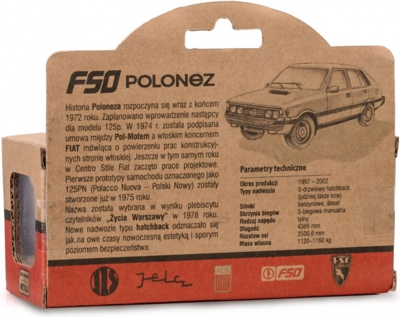 Odkryj ikoniczny polski samochód w formie kolekcjonerskiego modelu FSO Polonez w skali 1:43. Ten precyzyjnie wykonany model z metalu z plastikowymi detalami oferuje autentyczny wygląd i jest idealny dla kolekcjonerów oraz młodych miłośników motoryzacji. Spełnia europejskie normy bezpieczeństwa i świetnie sprawdzi się jako stylowy prezent. Metalowe wykonanie DIE-CAST, detalne wykończenie, skala 1:43, oficjalna licencja FSO.