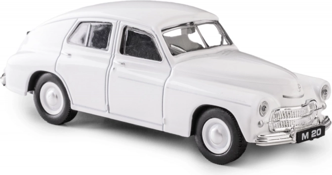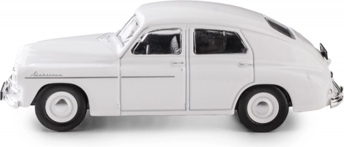 Odkryj klasykę w czystej bieli: kolekcjonerski model WARSZAWA M20, który wiernie oddaje design powojennych sedanów. Metalowa konstrukcja DIE-CAST nadaje modelowi masę i trwałość, a subtelne plastikowe detale podkreślają autentyczny wygląd – od grilla chłodnicy po profilowane zderzaki.