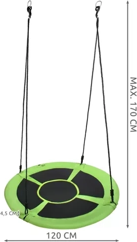 Zawieszana huśtawka bocianie gniazdo 120 cm, zielono‑czarna, 150 kg