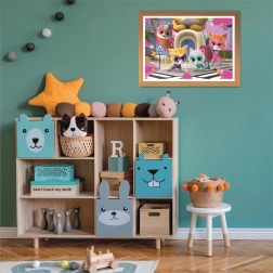 Puzzle z serii SuperColor zostały zaprojektowane specjalnie dla dzieci – bezpieczne, trwałe i edukacyjne. Ułożony obraz ma około 27 × 18,5 cm, co jest praktycznym rozmiarem do zabawy na stole lub podkładce.