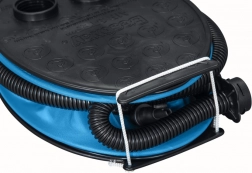 Lekka i poręczna pompka nożna dzięki niskiej masie i paskowi do węża łatwo się składa i przenosi – idealna na kemping i w podróży.