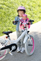 Dzieci mogą symulować jazdę na rowerze ze swoją lalką, co wspiera rozwój wyobraźni i umiejętności motorycznych.