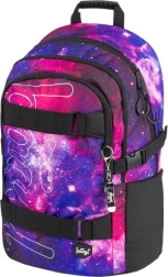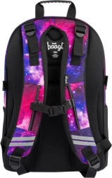 Stylowy szkolny zestaw BAAGL Skate Galaxy w kosmicznym designie ucieszy każdego ucznia. Zawiera lekki ergonomiczny plecak o pojemności 25 l z kieszenią na laptop 15", solidny piórnik bez wyposażenia oraz praktyczny worek na obuwie. Plecak ma ergonomicznie wyprofilowane plecy, regulowane szelki w tym pas piersiowy, paski do mocowania deskorolki, elementy odblaskowe i jest wykonany z materiału wodoodpornego. Cały zestaw wyróżnia się lekką konstrukcją (850 g) i przemyślaną organizacją dla wygodnego noszenia na co dzień.