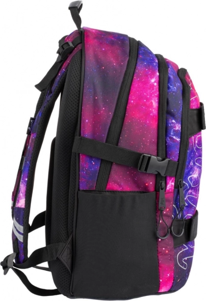 Odkryj idealne połączenie funkcjonalności i stylu. Zestaw szkolny BAAGL Skate Galaxy oferuje wytrzymały plecak z trójkomorowym układem, organizerem i wyściełaną kieszenią na laptop 15" lub tablet. Ergonomicznie ukształtowane plecy, w pełni regulowane szelki ramienne, pas piersiowy oraz boczne paski kompresyjne zapewniają zdrowe i wygodne noszenie przez cały dzień. Przednie paski służą do mocowania deskorolki, boczne elastyczne kieszenie mieszczą butelkę na napój, a elementy odblaskowe zwiększają widoczność.