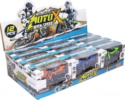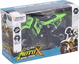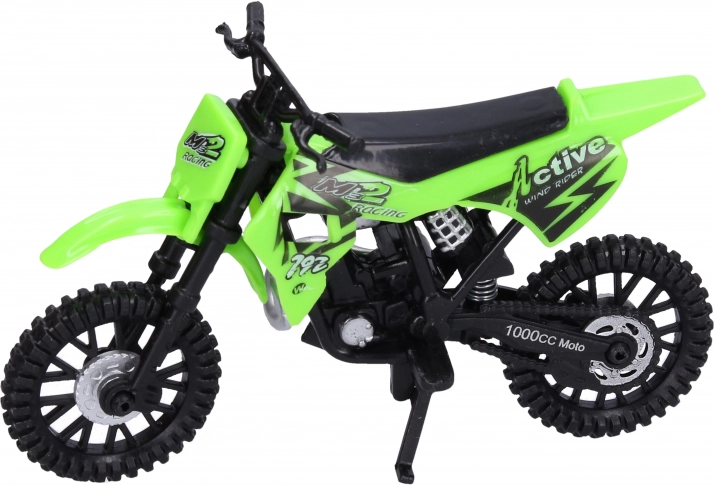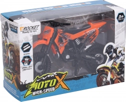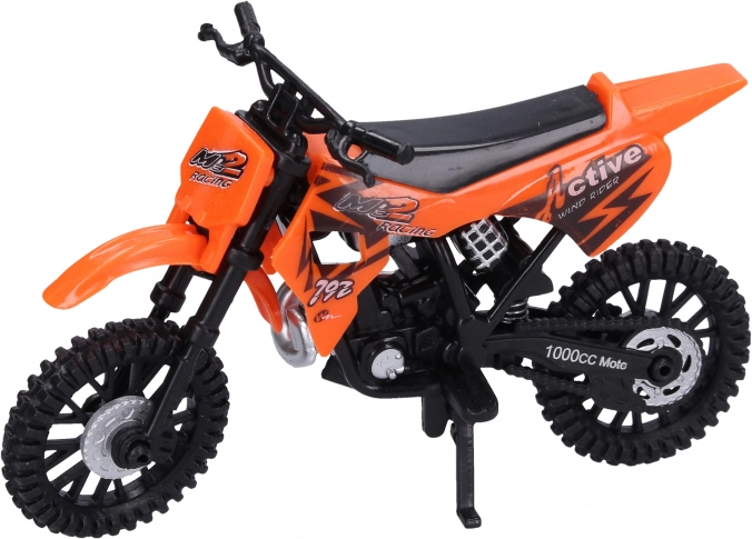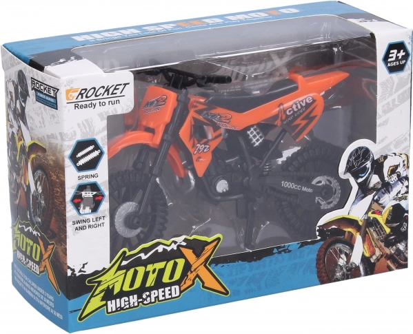 Kompaktowy motocykl terenowy o długości 12 cm ucieszy małych zawodników realistycznym wyglądem i łatwą obsługą. Ma koła na wolny bieg, jest dostępny w 3 wariantach kolorystycznych (pomarańczowy, zielony, niebieski) i świetnie nadaje się do zabawy w domu i w podróży.