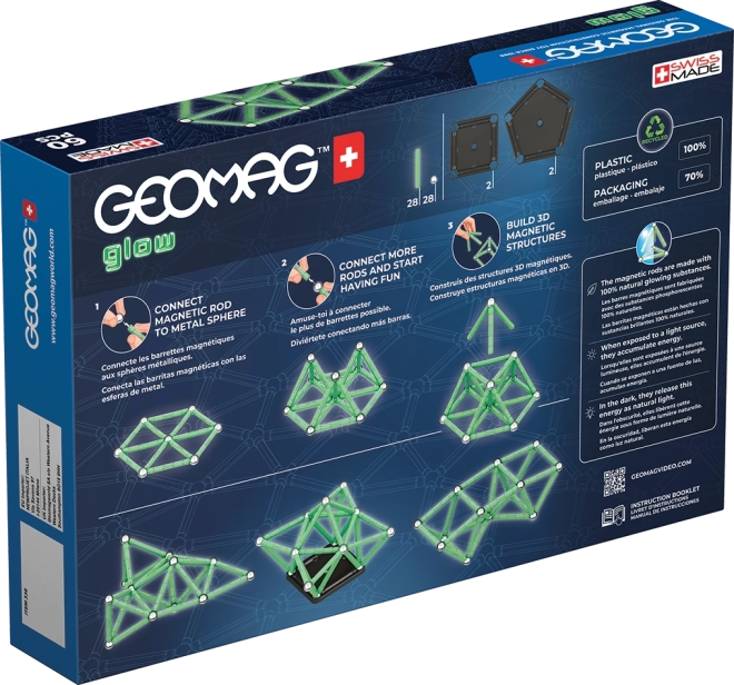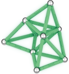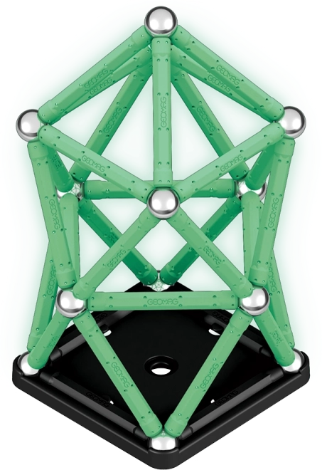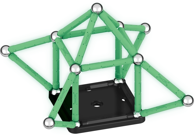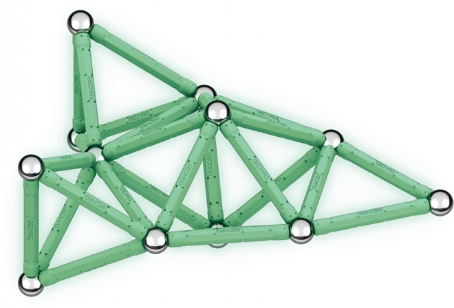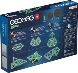 Zestaw Geomag Glow łączy zabawę i naukę w jednym. Świecące magnetyczne patyczki ożywają po zmroku i zamieniają każdy model w efektowny pokaz świetlny. Elementy wykonano w 100% z recyklingowanego plastiku, dzięki czemu dzieci bawią się ciekawie i w sposób zrównoważony.