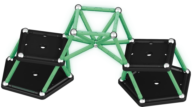 - 28× świecący magnetyczny patyczek, 28× metalowa kulka, 2× kwadratowa podstawa, 2× pięciokątna podstawa, 3× pudełko do przechowywania