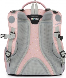 Plecak szkolny OXY GO w delikatnym designie z motywem motyli zachwyca wyglądem i przemyślaną ergonomią. Dzięki oddychającym plecom i regulowanym szelkom zapewnia komfort podczas całodziennego noszenia i wspiera prawidłową postawę. Niska waga 0,99 kg oraz elementy odblaskowe zwiększają bezpieczeństwo w drodze do szkoły.