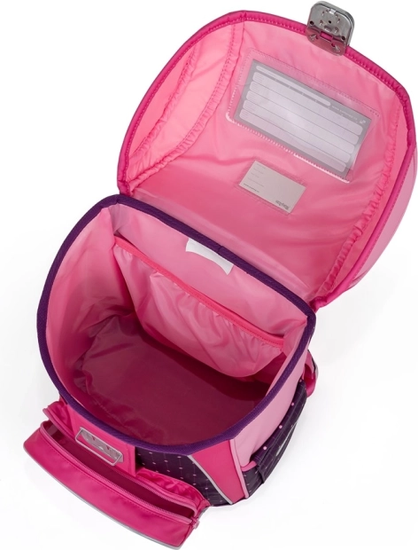Główna komora z wewnętrzną kieszenią, identyfikatorem i planem lekcji umożliwia efektywną organizację przyborów szkolnych. Przednie i boczne kieszenie zapewniają miejsce na pojemnik na drugie śniadanie i inne akcesoria.