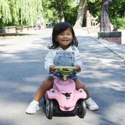 Uroczy różowy jeździk BIG Bobby Car Classic Flower jest idealny dla dzieci od 12 miesięcy. Dzięki niskiemu środkowi ciężkości, profilowanemu siedzisku i skrętnym kołom jest stabilny, bezpieczny i wygodny. Oferuje kierownicę z klaksonem, uchwyt do holowania i hak na przyczepkę oraz świetnie rozwija motorykę i koordynację podczas zabawy w domu i na zewnątrz.