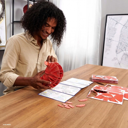 Przeżyj superbohaterską zabawę, składając realistyczną głowę SPIDER-MANA. Ten oficjalnie licencjonowany model wyróżnia się precyzyjnymi kształtami, ikonicznym pajęczynowym wzorem i wyrazistymi oczami. Dzięki przemyślanej konstrukcji złożysz go bez kleju i bez narzędzi – elementy wystarczy wyłamywać i łączyć zgodnie z instrukcją.
