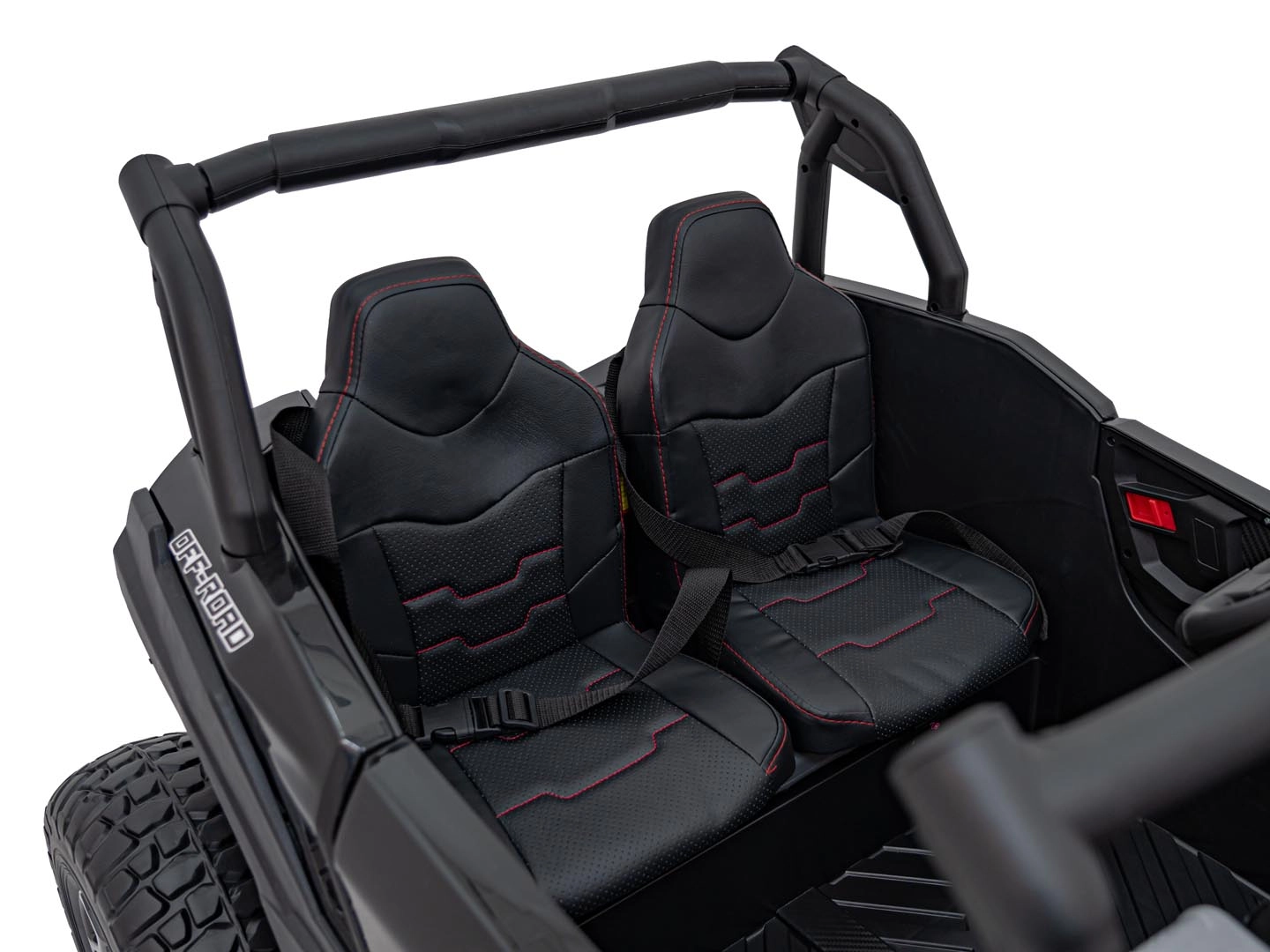 - Wygoda i bezpieczeństwo: Dwa wentylowane siedzenia z ekoskóry z pasami bezpieczeństwa i pięciostopniową regulacją.