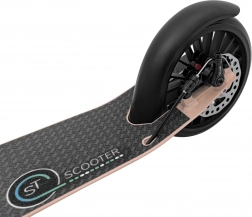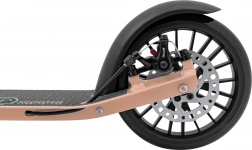 Stylowa miejska hulajnoga SporTrike z lekką aluminiową ramą, podwójnym układem hamulcowym (ręczny tarczowy + nożny) oraz regulowaną wysokością kierownicy dla komfortowej jazdy. Antypoślizgowy podest, gumowe koła 190 mm i praktyczna stopka zapewniają bezpieczeństwo, stabilność i łatwe parkowanie.