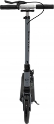 Dla bezpieczeństwa hulajnoga jest wyposażona w podwójny system hamowania – ręczny hamulec tarczowy z tyłu oraz hamulec nożny na błotniku. Trzystopniowa regulacja wysokości kierownicy (85–99 cm) dopasowuje się do użytkowników o różnym wzroście, a ergonomiczne gumowe rączki zapewniają komfort także na dłuższych trasach.