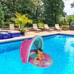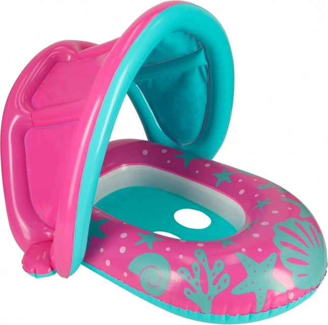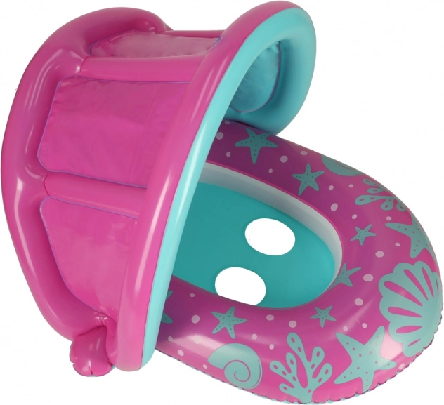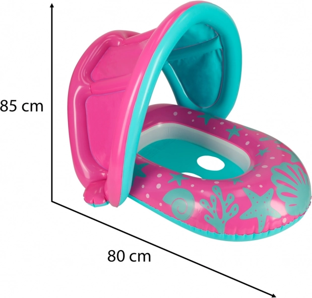 Różowo-niebieskie dziecięce siedzisko do pływania z daszkiem to świetny wybór dla maluchów rozpoczynających przygodę z wodą. Dmuchany daszek daje cień i pomaga chronić wrażliwą skórę przed słońcem, a w razie potrzeby można go łatwo odpiąć. Otwory na nogi i wyprofilowane siedzisko zapewniają pewność i wygodę, dzięki czemu dziecko może bezpiecznie korzystać z wodnych zabaw.