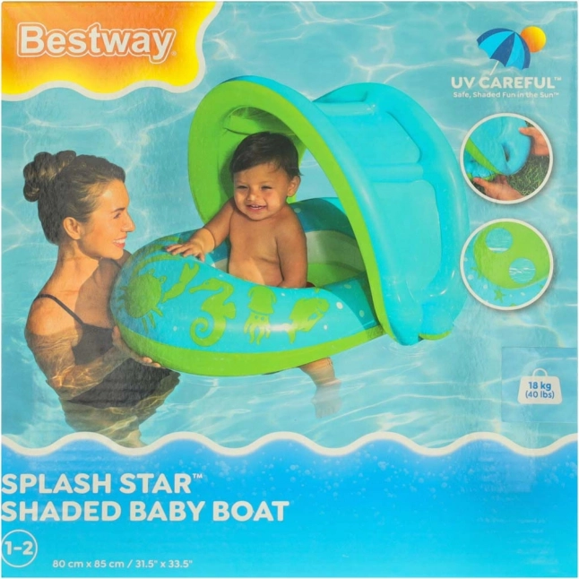 Ciesz się letnimi wodnymi zabawami z pewnością i spokojem. Dziecięcy fotelik do pływania z odpinanym dmuchanym daszkiem chroni wrażliwą skórę dziecka przed promieniami słonecznymi i zapewnia przyjemny cień w basenie i nad morzem.