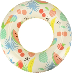 Zabawny nadruk z bananami, arbuzami i innymi motywami dodaje kąpieli frajdy, a dzieci chętnie korzystają z koła.
