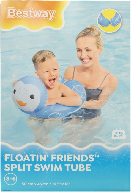 Ciesz się wodnymi zabawami z dziecięcym nadmuchiwanym kołem BESTWAY w kształcie pingwina. Zabawny design, przyjemny niebieski kolor i bąbelkowy motyw zachęcą dzieci do bezpiecznego oswajania z wodą i nauki pływania. Koło wykonano z wytrzymałego PVC i przeznaczono dla dzieci w wieku 3–6 lat (maks. 30 kg).