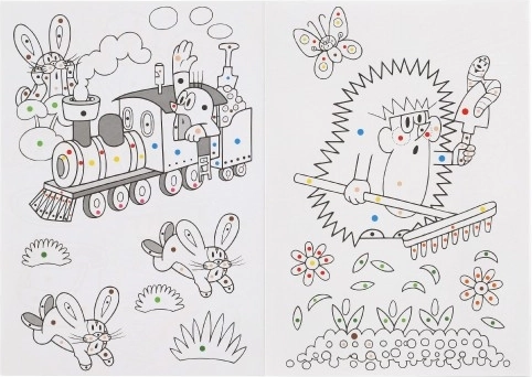 Kolorowe kropki na ilustracjach prowadzą dzieci krok po kroku do samodzielnego kolorowania i wzmacniają pewność w rozpoznawaniu barw.