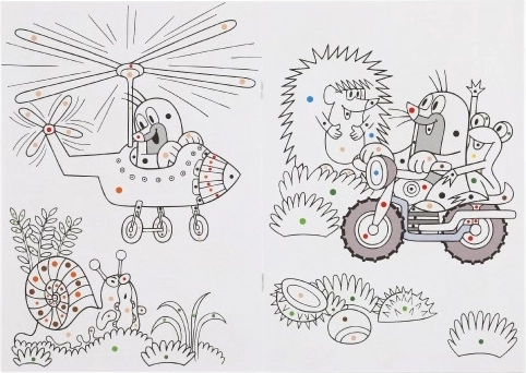 Odkryj magiczne kolorowanki z ulubioną postacią KRECIKA, które w zabawny sposób pomagają dzieciom poznawać kolory. Każdy obrazek ma w poszczególnych częściach kolorowe kropki – dziecko po prostu dopasowuje kropkę do koloru na maxi kredce woskowej i koloruje właściwe miejsce. Efektem jest pięknie pokolorowany obrazek bez zbędnego błądzenia.