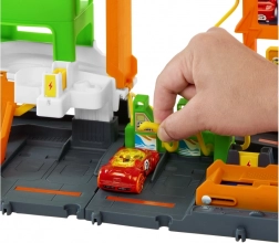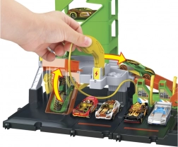 Stacja umożliwia przechowywanie aż 10 autek w skali 1:64, co dodaje kolejny wymiar zabawie i organizacji.