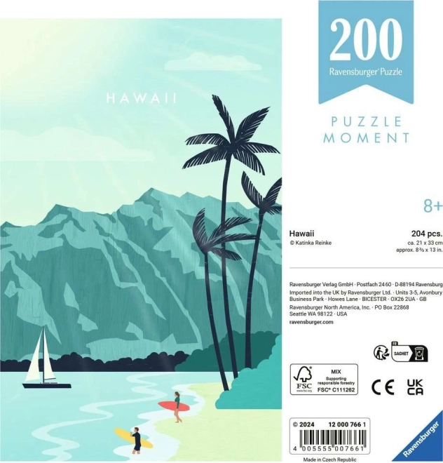 Odkryj urok chwili z puzzlami Ravensburger Hawaje składającymi się z 200 elementów, które przeniosą Cię w świat spokoju i relaksu.