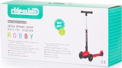 Hulajnoga Robby charakteryzuje się lekką ramą aluminiową, która gwarantuje łatwe prowadzenie. Jest odpowiednia dla dzieci od 3 lat i ma nośność do 50 kg. Dzięki gumowym antypoślizgowym uchwytom i szerokiej platformie oferuje większe bezpieczeństwo i komfort podczas jazdy. Hulajnoga jest wyposażona w przednie i tylne kółka z kolorowymi LED światłami, które zapewniają widoczność nawet w ciemności. Kierownica jest regulowana na trzy pozycje, a jej złożenie ułatwia przechowywanie. Do zatrzymywania służy nożny hamulec na tylnym kole.